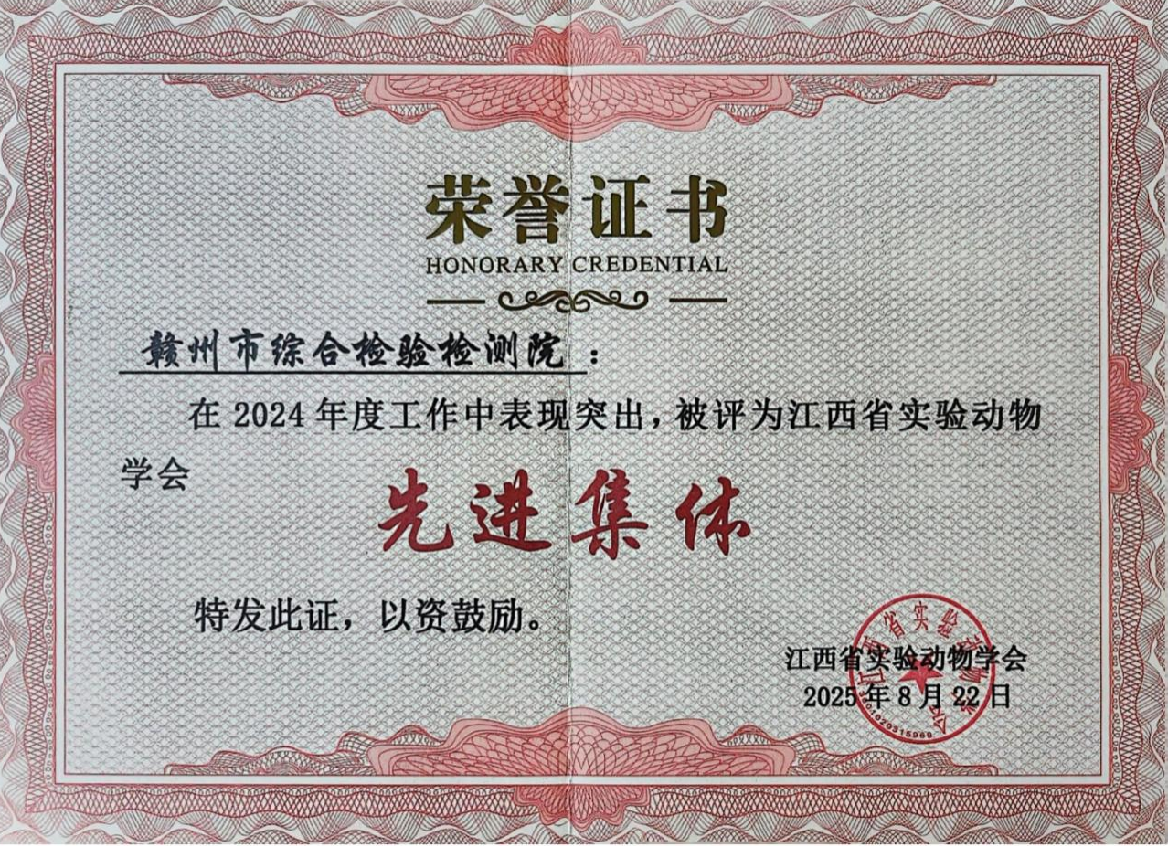 近日,江西省实验动物学会2024年度表彰大会在宜春召开,会上,我院实验动物团队凭借在实验动物许可证管理、质量控制与服务保障领域的卓越表现,获评省实验动物学会“先进集体”。