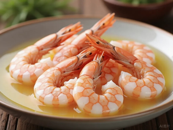 ② 鲜虾摆盘,出锅淋茶油和生抽。