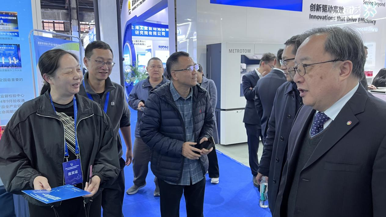 在大会的计量仪器装备展上,中心自主研发的测温合金模型与大流量宽动态滴加系统精彩亮相,作为计量技术深度融入产业需求的典型创新成果,为稀土永磁、新材料等行业提供了精准、可靠且可推广的测温与工艺控制解决方案,吸引了大量与会专家与同行驻足交流。展览期间,中国计量科学研究院专家段宇宁、江西省市场监督管理局计量处处长姚莉亲临中心展位现场指导,详细听取技术汇报并体验设备演示。