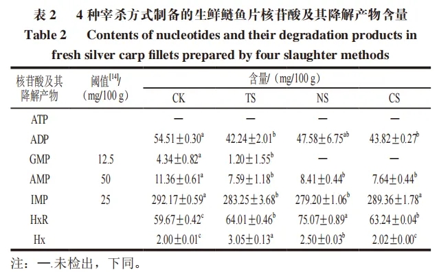 三、宰杀前放血和冷胁迫对生鲜鲢鱼片核苷酸及其降解产物的影响