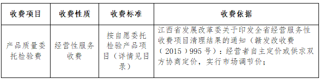 注:收费标准目录见:赣州市综合检验检测院官网→业务大厅→收费标准→质检所收费公示目录
